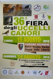 Torna come ogni anno a Ferragosto la Giera Fiera Canora degli Uccelli di Chiesina Uzzanese (PT). Fulcro della manifestazione è la gara canora, che partirà alle prime luci dell'alba ospitando partecipanti da tutta Italia ma anche la mostra mercato nel Parco Sandro Pertini e nella Piazza della Libertà.